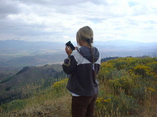 My first guest was 16 yr. old Uschi Gorzelany who arrived here on August 2nd (That link will show her kinship connection to our Konrad). We had met in June, 1996 during my brief visit to Kochstetten and then became penpals which ultimately led to her visit here. This was her first visit to America and the first time she was to be away from her family for more than a couple days at one time. She stayed with me for four weeks and kept this old man very busy playing tour guide. We made excursions in this part of Idaho nearly every day. Some of those destinations were Craters of the Moon, The Sawtooths Mountains in Stanley, paddleboating in Redfish Lake, the lookout station on nearby Bell Mountain, a 4000 cow dairy farm near Jerome, Shoshone Falls by Twin Falls - to mention a few. Toward the end of the month, we took a four day trip to Glacier and Yellowstone (157 K collage) National Parks, a 1550 mile loop.