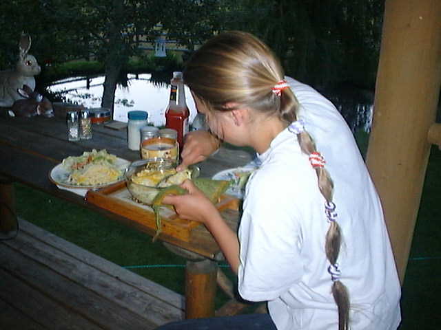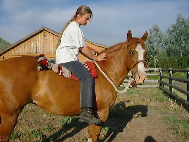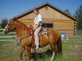 She is such a remarkable young woman. Very mature for her age. She did not wait to be entertained; She would hike the mountains around my house, ride the bicycle into Hailey and volunteer a day's labor at the local animal shelter, saddle up my mare and ride her to the Wood River 2 miles west of here and then ford the river, forcing Sunny to swim for her life; Other times, she would ride bareback up or down the canyon. One day, she rode the bicycle up to Ketchum, a 19 mile stretch on a paved bike path. She picked pie cherries at the neighbors, Tom and Jan Farr, then baked two cherry pies. One evening, she made homemade Spätzle (Swabia's favorite noodle dish) and served this on the front porch. Such boundless energy!