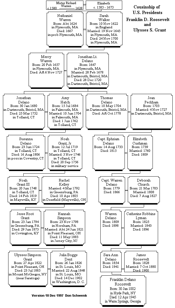 between these famous cousins and me, and our descent from Richard Warren.