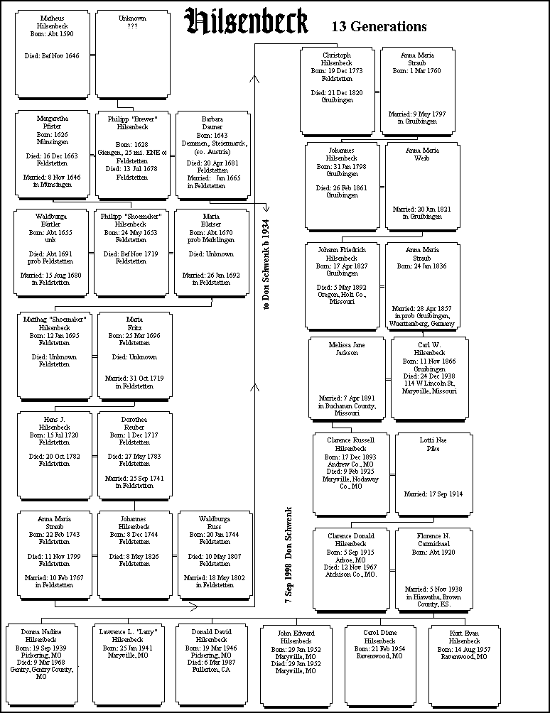 The question here is whether this same kind of name modification occurred with our Philipp Hilsenbeck's father or grandfather, or who knows how far back? What is probably more important, however, is whether this family name arose in one place in Germany. If is did, and this was in the Stuttgart-Ulm region, this would support my contention that all Hilsenbecks in Germany and in America have a common Hilsenbeck ancestor.
