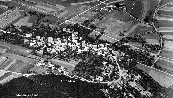 Mundingen. This community, pop. circa 300 in 1997, lies about 15 miles south of Feldstetten, five miles west of the city of Ehingen, and just a few miles north of the Donau (Danube) River. It lies nestled on the southern end of a very small basin at an elevation of 2074 ft. Original forests of beech, oak, birch, and conifers grow on the high ground surrounding Mundingen and this basin. All the tillable ground, as in all areas of this region, is under cultivation.