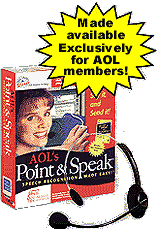 | Most of you have heard of speech recognition programs. With these, one speaks into a microphone and the words appear on the screen - in an e-mail or word processor application. Sort of like a dictation machine, except you do not need a secretary to do the typing. I had heard from a few friends who had acquired these kind of programs that they are far from perfect. Well anyway I saw such a program being promoted on America Online. I clicked on TELL ME MORE. And it told me that this Point & Speak program is fantastic. Naturally. $39.95 plus shipping and handling plus state tax if applicable. PC magazine was quoted in saying that Point and Speak is 99 percent accurate. Well, to make a long story short I ordered it and am writing this very article with my hands on my lap. | ![]() |