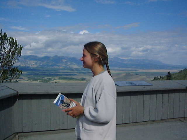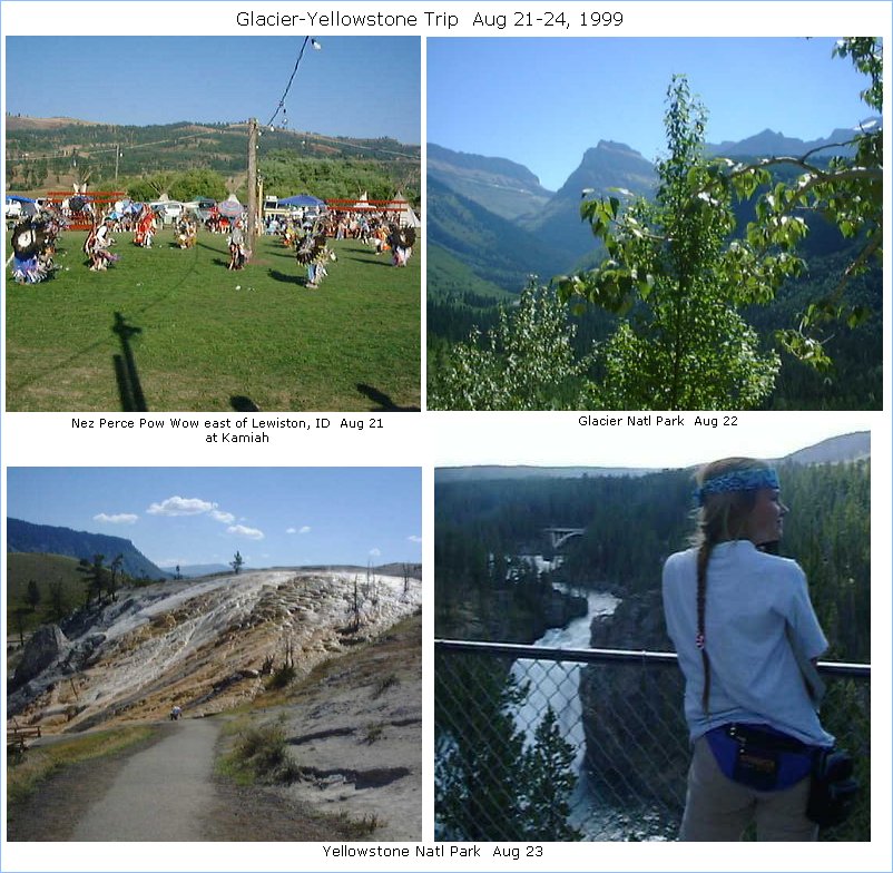 My first guest was 16 yr. old Uschi Gorzelany who arrived here on August 2nd (That link will show her kinship connection to our Konrad). We had met in June, 1996 during my brief visit to Kochstetten and then became penpals which ultimately led to her visit here. This was her first visit to America and the first time she was to be away from her family for more than a couple days at one time. She stayed with me for four weeks and kept this old man very busy playing tour guide. We made excursions in this part of Idaho nearly every day. Some of those destinations were Craters of the Moon, The Sawtooths Mountains in Stanley, paddleboating in Redfish Lake, the lookout station on nearby Bell Mountain, a 4000 cow dairy farm near Jerome, Shoshone Falls by Twin Falls - to mention a few. Toward the end of the month, we took a four day trip to Glacier and Yellowstone (157 K collage) National Parks, a 1550 mile loop.