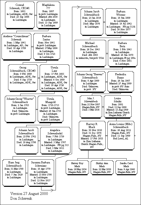 Floyd Pope of Niagara Falls, NY, and born there in 1962, is the son of Shirley Mack Pope who joined our "Klub" only a few months ago. He descends from Konrad though many generations of the Schwenkbeck line. Floyd recently came online. Here is the descent tree of his mother.