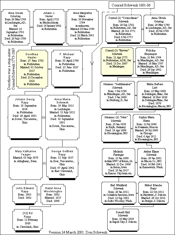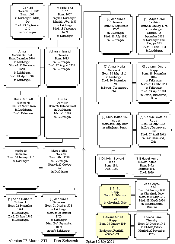 Here is Ed Rapp's family tree showing his descent from our Konrad Schwenk.
